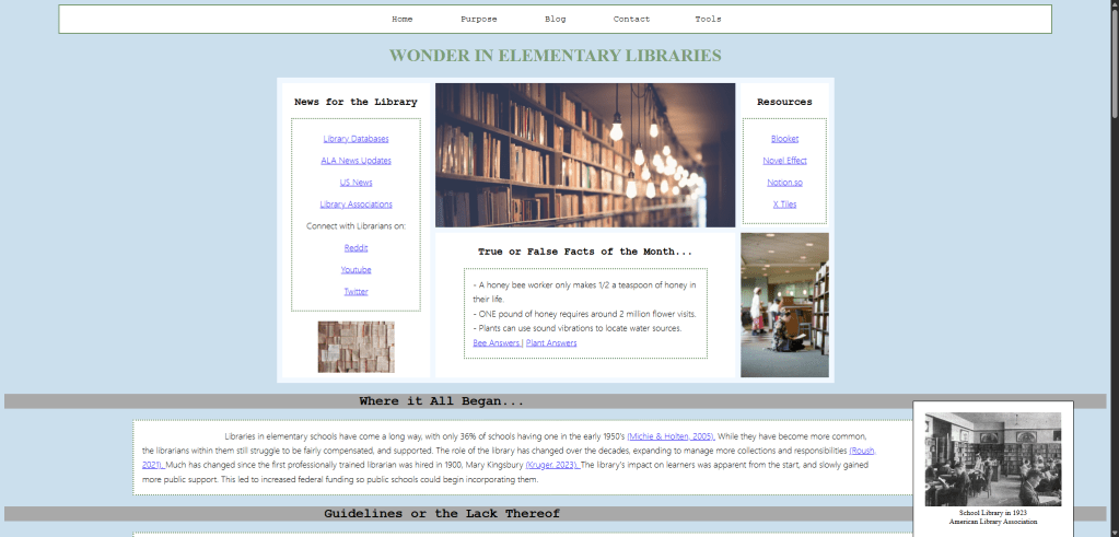 Having built multiple websites during my MLIS program, I am being realistic with myself that going at a leisurely pace – this site will take eons to build to satisfaction. Okay perhaps a year or so before I am comfortable with its progress however, I would like to link and showcase some of the work that I have done.